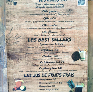 Il offre un snacking abordable de qualité, à base de produits artisanaux et locaux de tradition créole : salades, Buddha bowls sucrés ou salés et burgers, accompagné d'un bar à jus incomparable où trouver "les mocktails exotiques", boissons énergisantes naturelles et tisanes, ainsi qu’une sélection de whiskys et vodka péï, sans oublier le Rhum Zarboutan à déguster.